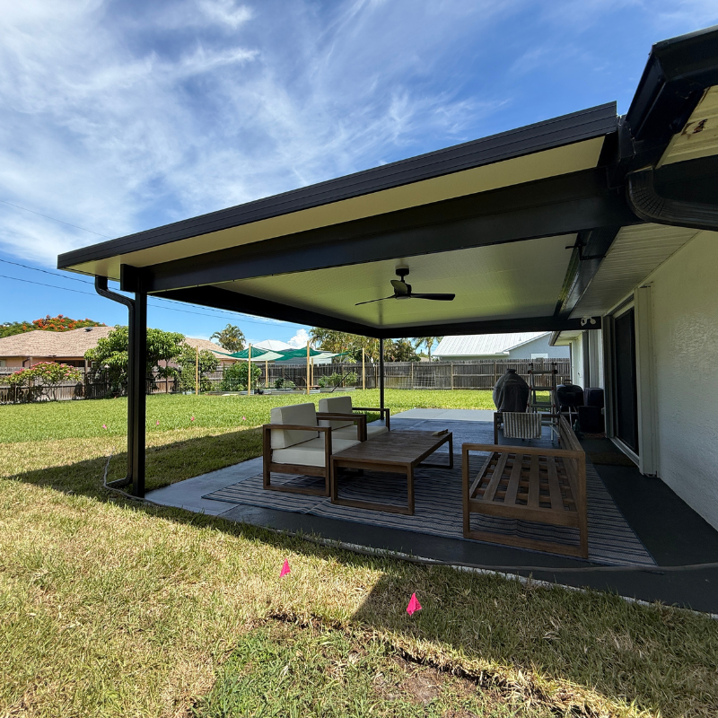 Compare aluminum vs wood patio covers for Florida homes, including durability, maintenance, cost, and long-term value.